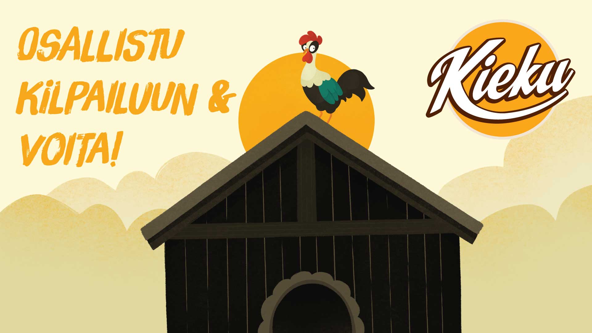Kiekun kukko on kadottanut äänensä. Auta kukkoa ja jaa meille somessa tai sähköpostilla tyylikkäin kiekaisunäytteesi! 10 parasta kiekaisua palkitaan 100 euron lahjakortilla ja kaikista mahtavin kukkoilija voittaa unelmien 2–4 hengen lomamatkan Lappiin (arvo n. 2000 €). Kilpailu on käynnissä 7.–26.4.2026.